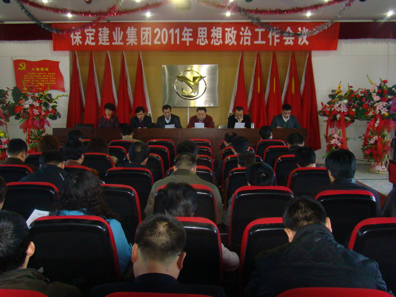 2011年3月8日,保定建業集團有限公司2011年思想政治工作會議在莊嚴的國歌聲中拉開了序幕,會議由黨委辦公室主任馬亞軍主持,集團各公司黨、政、工、團、婦、武裝、保衛負責人參加會議。